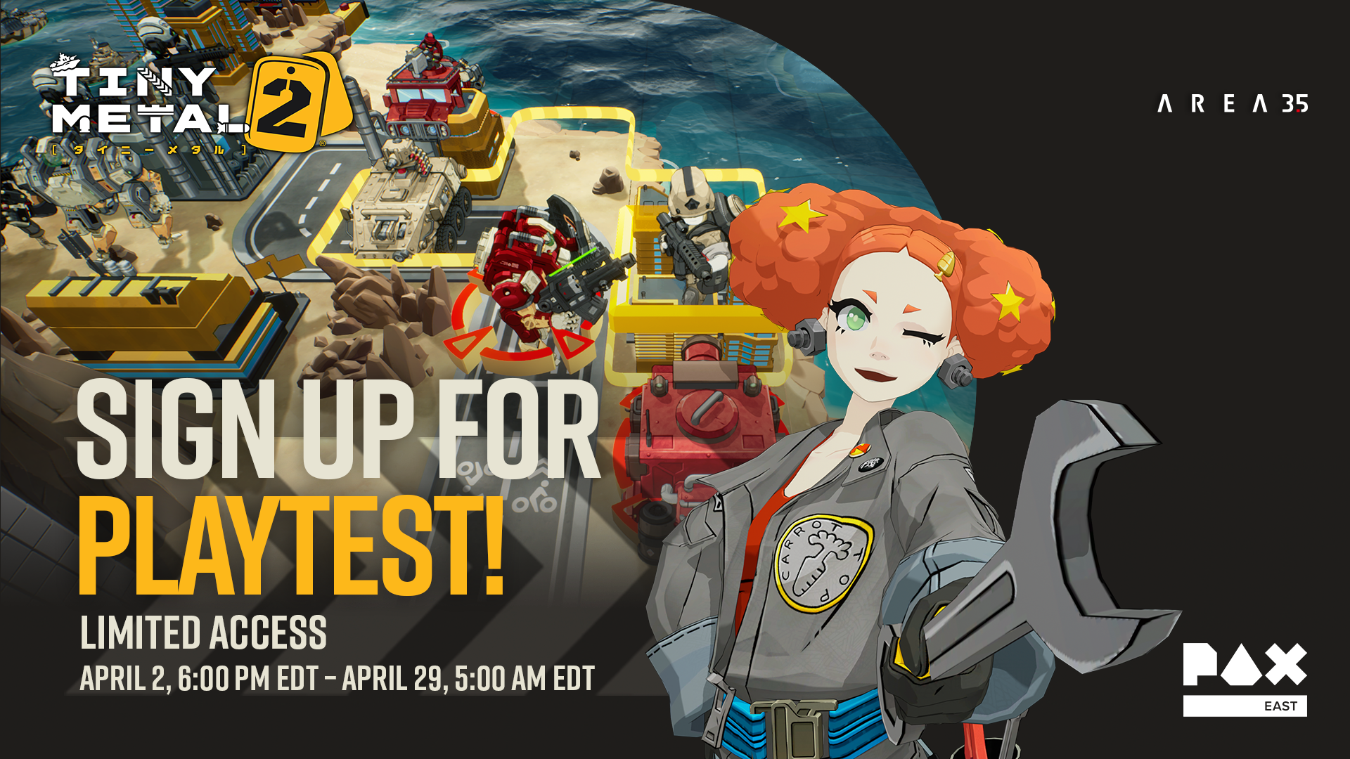 TOKYO – March 25, 2026 – AREA 35 announced today that TINY METAL 2, the next entry in the hit tactical wargame series, is hosting a limited, month-long Playtest from April 2-29 on Steam – and you’re invited! This Playtest will be fans’ first chance to jump back into the TINY METAL franchise since 2019’s FULL METAL RUMBLE. Make your presence known on the battlefield with explosive, strategic action, and give feedback to help shape the balance, pacing and overall systems of TINY METAL 2. Spaces are limited so register now on Steam!